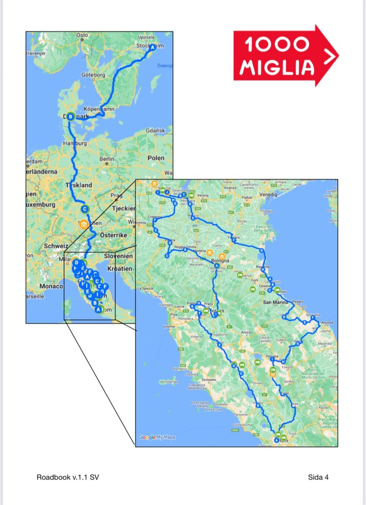 Tomorrow, we start to drive the Mille Miglia route from 2019. Day 1 will take us from Brescia to San Marino.