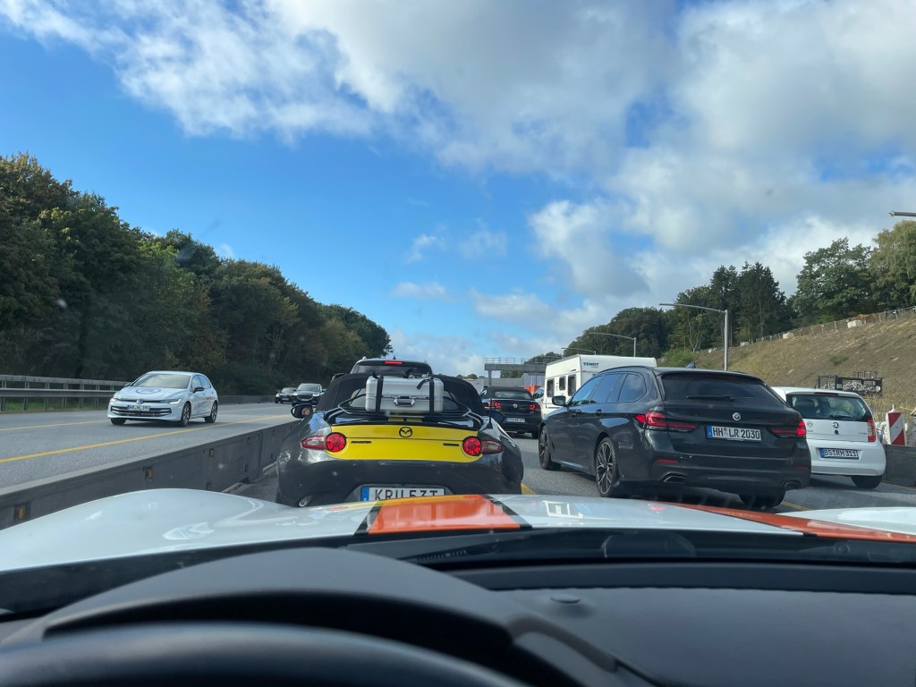 The benefit of driving through Germany on a Sunday is that there are almost no lorries on the roads. But there were several roadworks as well as some regular Stau without any apparent reason. One of Germanys mysteries.