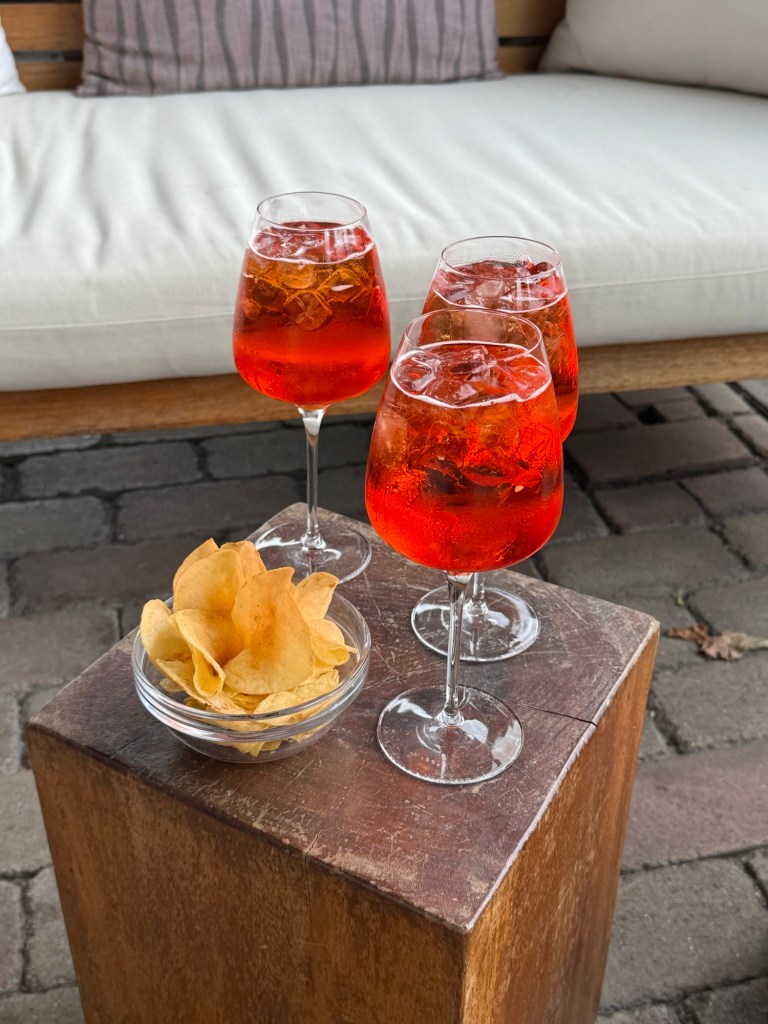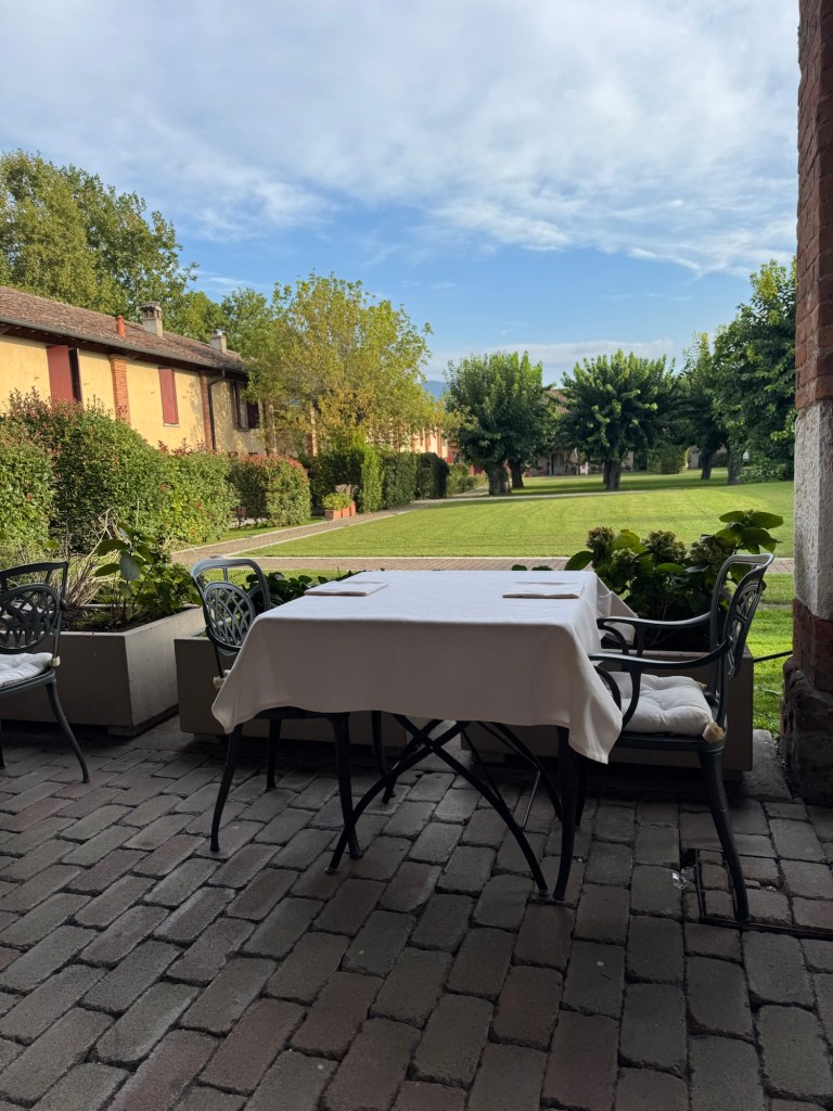 Then the plan was to visit the Mille Miglia Museum outlet in Franciacorta. But it turned out that they no longer operated that store. So we went back to the hotel and an Aperol Spritz in the garden.