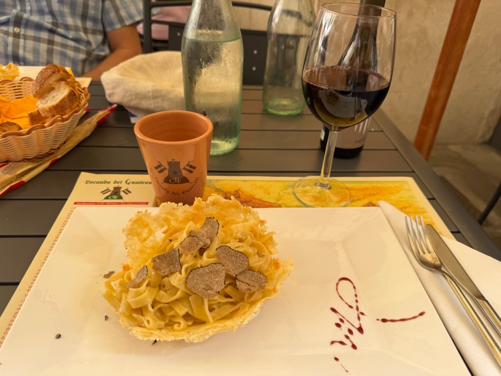 There were a lot of traffic and some road works all the way to Cervia. We continued up to our hotel for the night in Verruchio. Verruchio is a pretty little village on a hill top near San Marino. The views are stunning and most of the city has been part of the castle (or castles?) in the past.