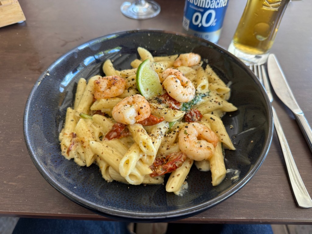 Pasta and shrimps Café del SolTidy parkingPit stop