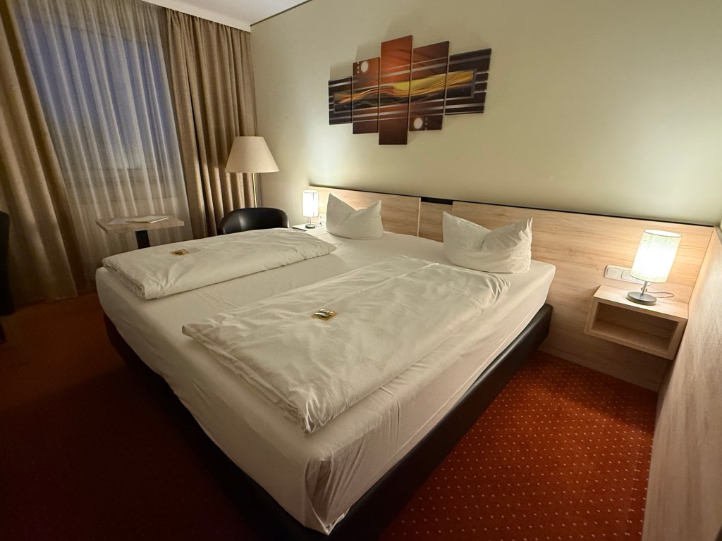 Arriving at the hotel in Nürnberg in the early evening.
