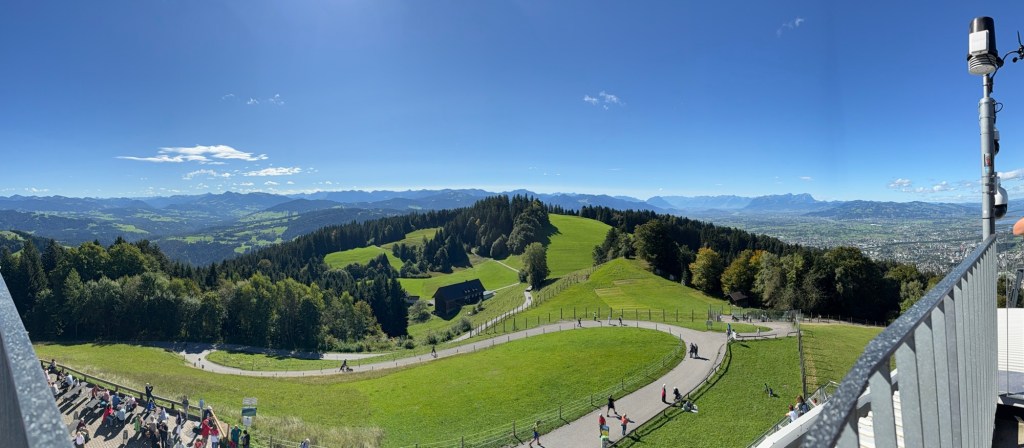 We left a grey Nürnberg with a slight drizzle in the morning and headed south. First stop was Pfänder next to Bodensee where we had lunch. The road leading up to Berghaus Pfänder isn’t for the faint hearted. We might post a separate video of that, it’s an 11 minute drive. So, will take a bit of editing.