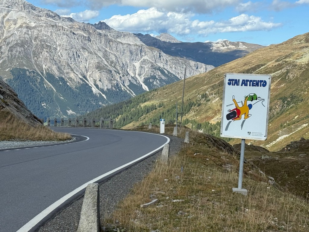 We planned to avoid Milan on the way to Brescia. Part of the route took us over Passo dello Spluga at 2,117 m. Apart from some mobile homes blocking the way, it was a great drive (and they did eventually pulled over to let us pass).