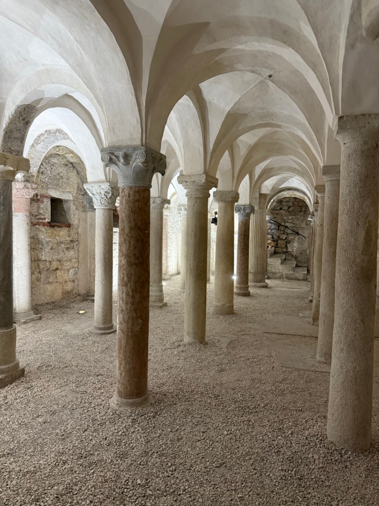 Breakfast table at Il SantelloneWe stumbled upon a Morgan in Brescia San SalvatoreOld pillars at the museumOld stairsPart of the old Monastery The cryptSaint FaustinoOld structures in the basement