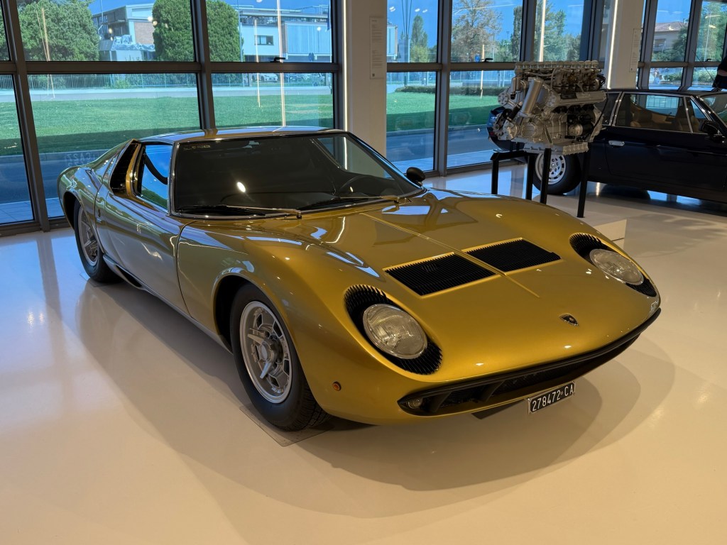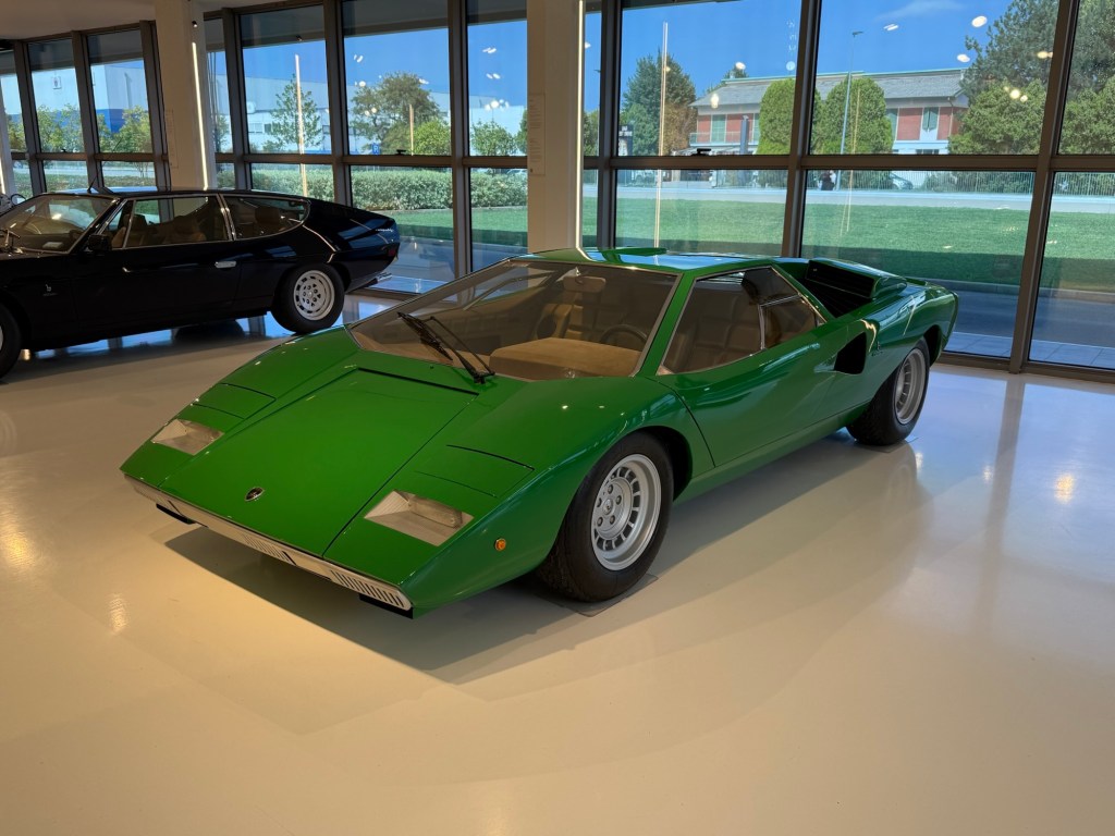 We then continued to Sant’Agata and the Lamborghini museum. There is no visitor parking next to the museum. So, you have to park further away in the industrial area. This is a very small museum and looks more like a showroom at a car dealership. Albeit an exclusive one. But it was nice to see some of the old and new cars up close.