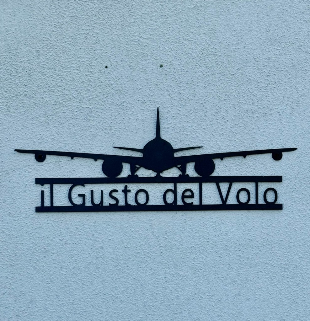 We stopped for lunch just outside Ferrara which we reached at lunch time. The control tower of the airport also hosts a restaurant called ”Trattoria Le Gusto del Volo”. It was a bit tricky to find the way, along a gravel road across a field. But well worth it, even if the car got a bit dusty.