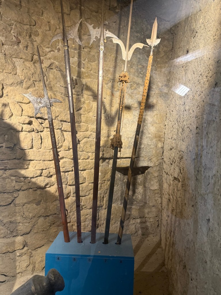 Map of the castle areaThe streets before all tourists arrivedSome modern art as wellStunning views in all directions Old weapons in one of the museumsSome armourView from the other tower