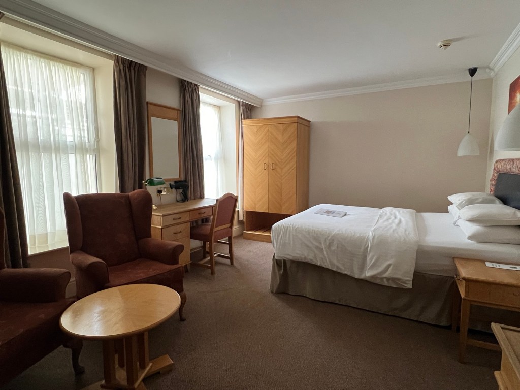 This nights hotel is Ballygally Castle Hotel. The room is great and so is the location and service. The restaurant isn’t so impressive though. We wanted to order some monk fish, but that was no longer available. So, we ended up with a dry hamburger instead.