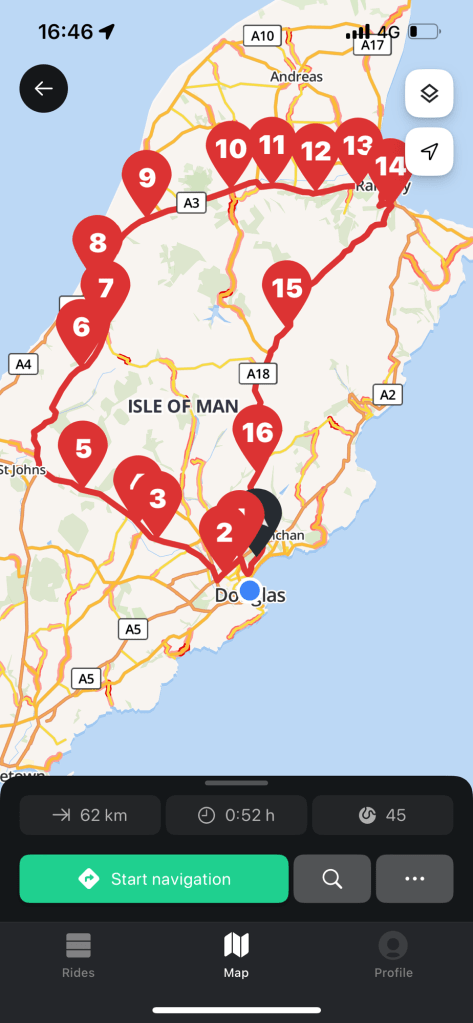 Today we left Ireland behind us and took the ferry to Isle of Man. We’ll have two full days to explore the island. If the weather gods are with us, we plan to take the train up on Snefell. We’ve booked one of the sea front hotels in Douglas for the stay. Apart from driving the TT course and going up Snefell. We have planned a few other activities as well.