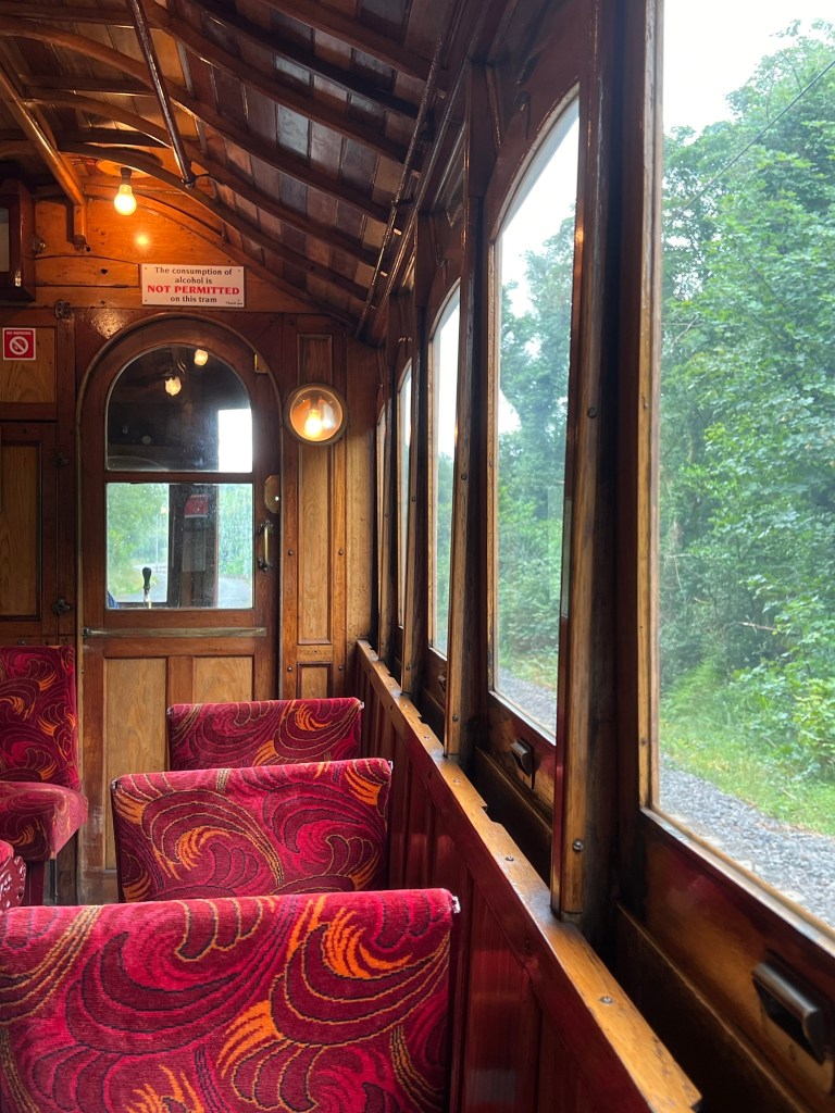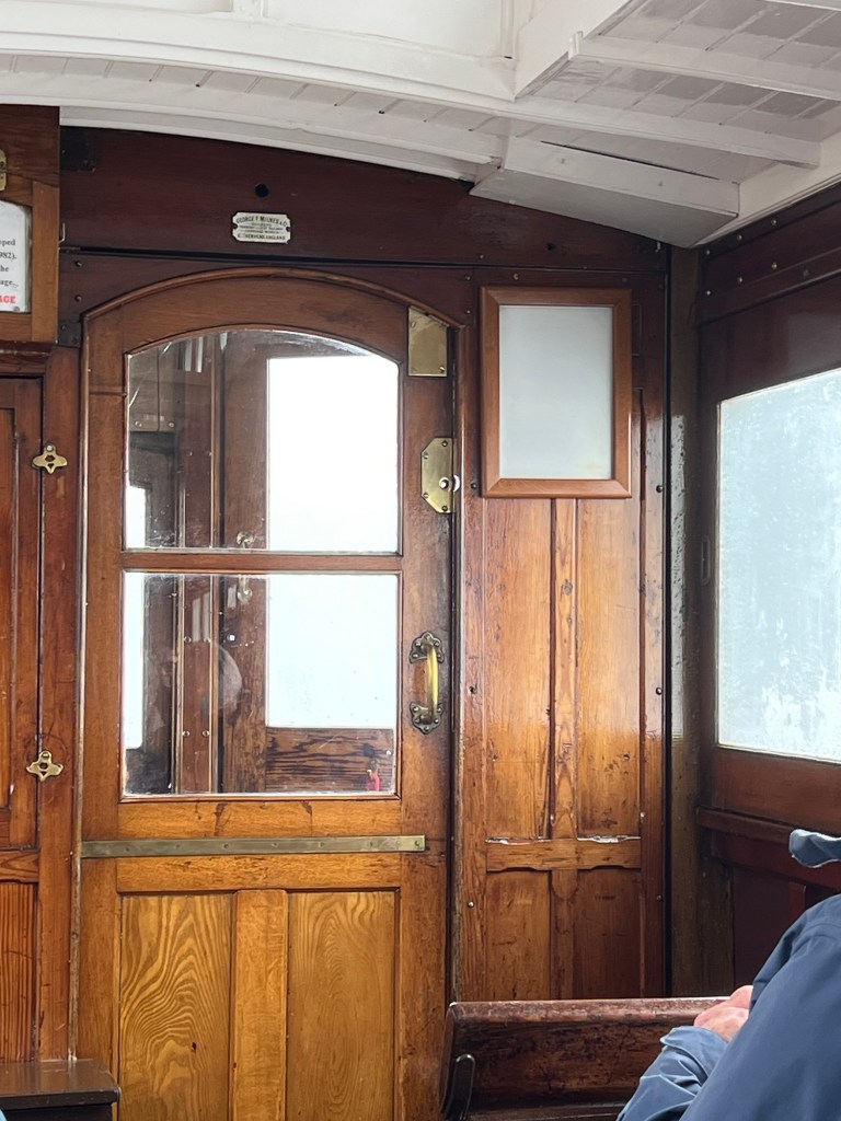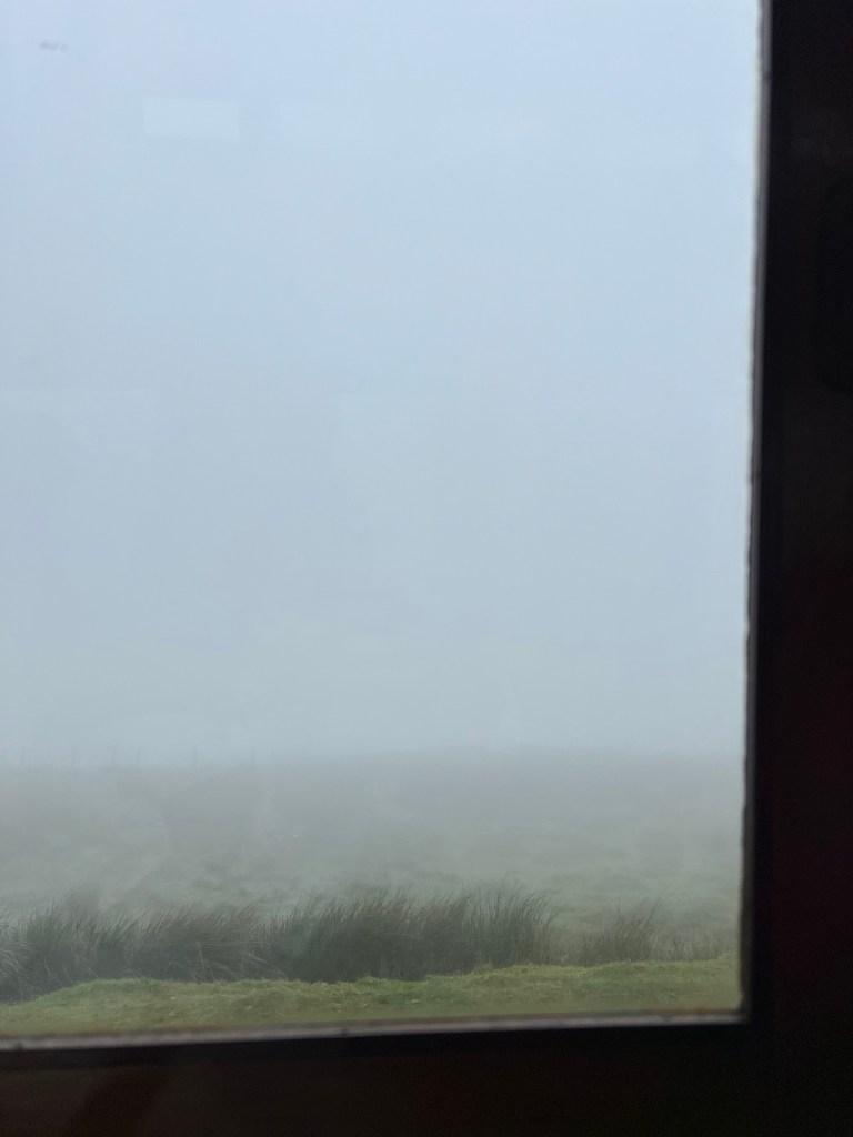 Misty mountains, that summarice today’s activities. Based on the earlier weather forecast, the weather today should be better than yesterday. However, the weather gods decided differently. It was cloudy and windy in Douglas. As we embarked on the train from Laxey up to Mount Snefell the weather detoriated. There was a dense fog/low cloud over the mountain. The prerecorded guide told us about various views. Which got the whole train laughing. We could hardly see the ground next to the train!