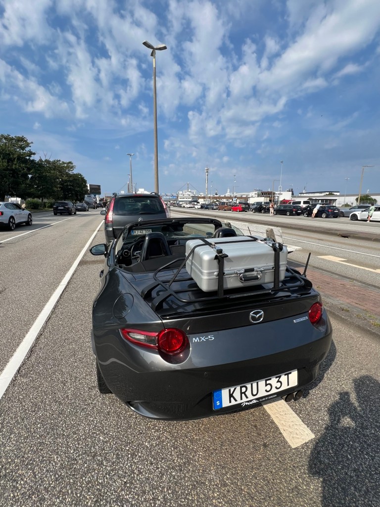 It was warm when we arrived in the harbour. For once, getting off the ferry and through the border controll went smoothly. Last year it to more than an hour. We bravely set off with the softtop folded. Despite some very dark clouds above is. We quickly had to reconsider a couple of kilometers later. The dutch weather gods gave us a wet welcome back.