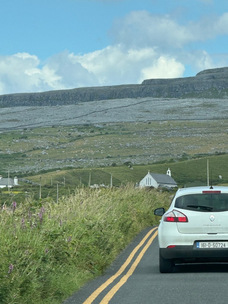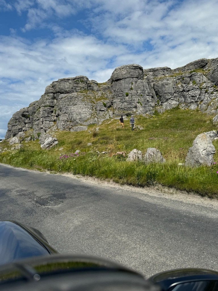 After lunch we decided to take a slight de-tour to the hotel. So we drove another backroad to avoid Cliffs of Mohar and ended up at R477. This road follows the coast all the way to Ballyvaughan where we stay for the night.
