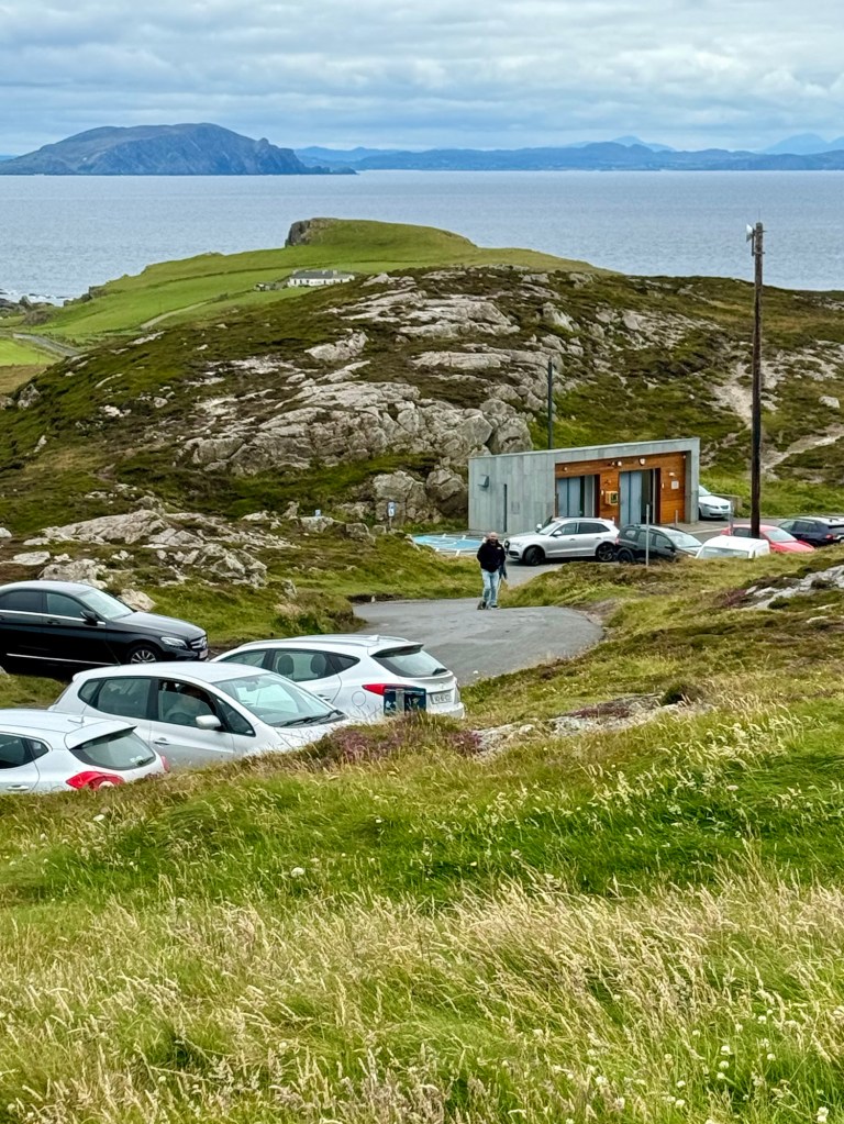 Driving up to Malins HeadChaotic parking with cars everywhereWe found a spot for our car