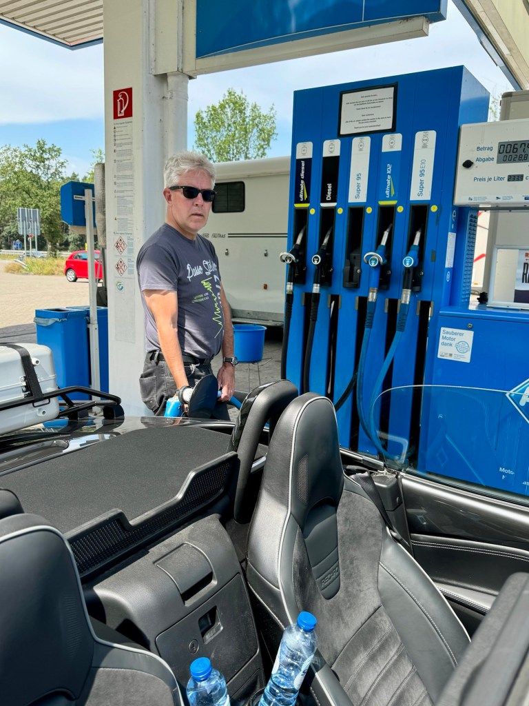 We had breakfast at a service station once more (better than the ferry though). There were more intense showers along the way towards Germany. The weather then shifted to blue skies and 34 degrees!
