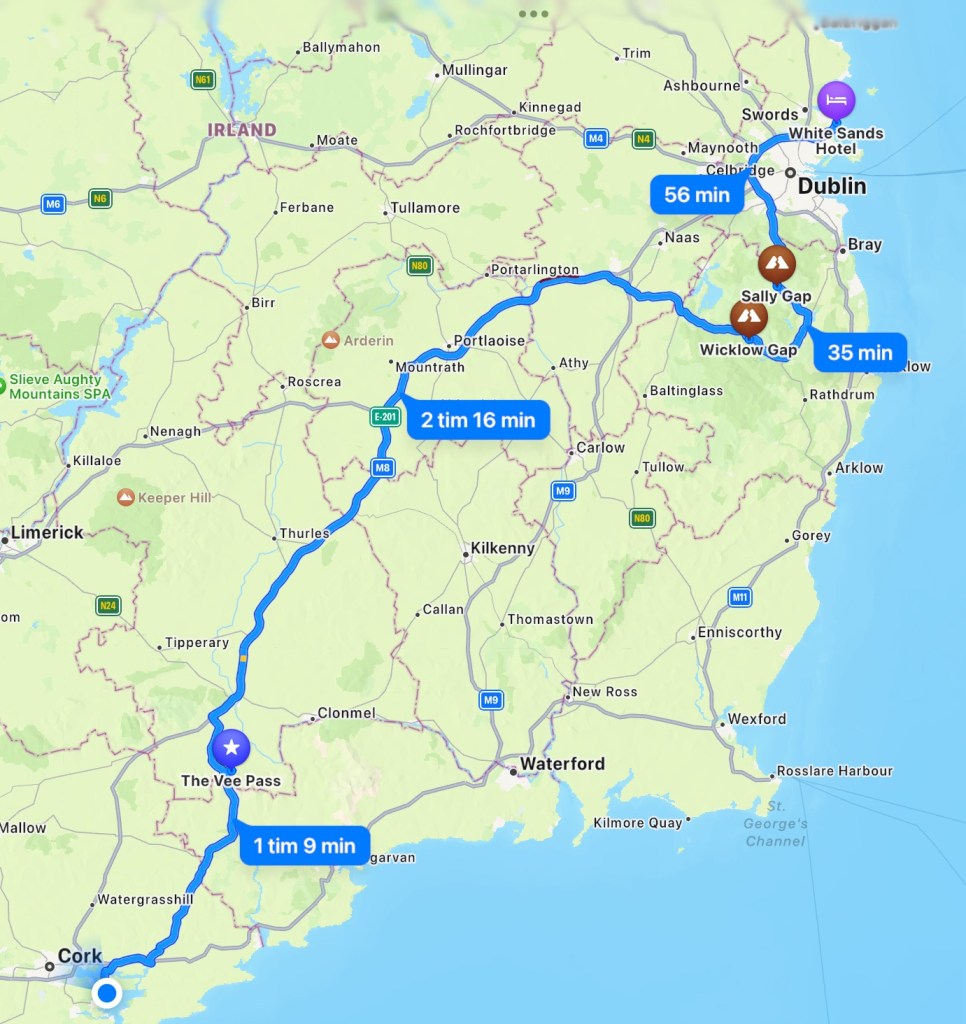 We drove approximately 195 km today. Tomorrow we’ll head north to the Cliffs of Moher.