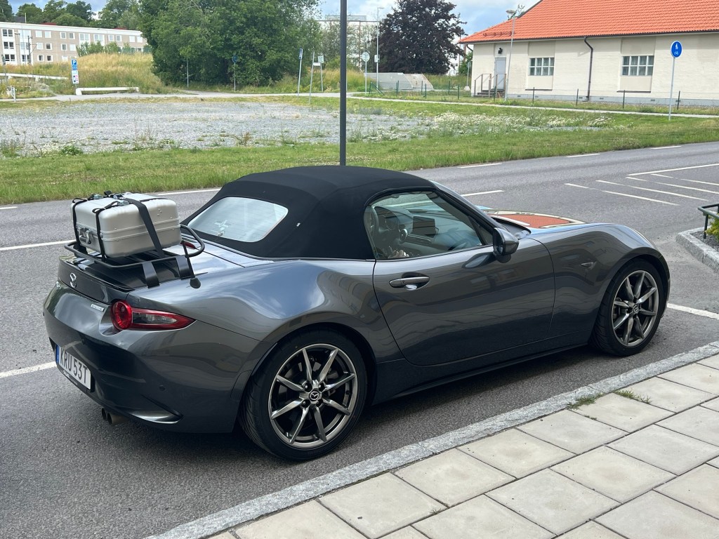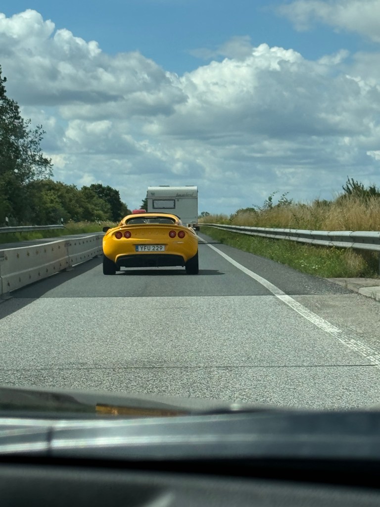 First day of our trip to Ireland. This time we are three people in two cars. Us in our Mazda MX-5 and one friend in his Lotus Elise. Today we covered most of the transfer through Sweden, from Stockholm to Lund. In all 638 km, about of which half of it on highways. It’s been raining a lot, so the softtop stayed up all day. This year we’ve added a luggage rack and an extra bag. We’ve also fitted some other wheels on the car. With tires that cope better with rain.