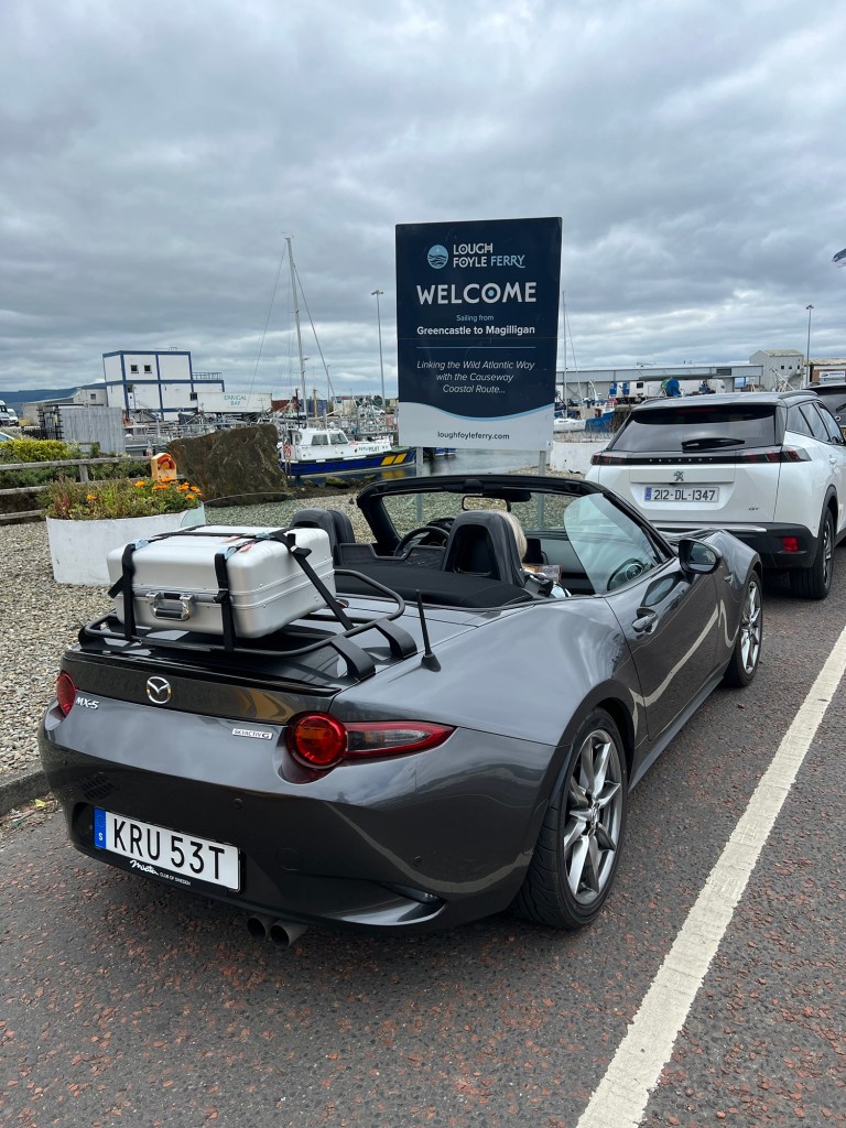 The car, we bought a brand new Mazda MX-5 last year. We used it on the tour to Scotland. Since planned to be away for a couple of more days, we decided to buy a luggage rack and an additional suitcase. We managed to get hold of a used Mazda suitcase (no longer sold by Mazda). The luggage rack worked well although it’s a bit fiddly to fit the straps (in particular when it’s raining). We didn’t notice any increase in full consumption despite adding a box on top of the boot. The suitcase wasn’t entierly water proof. So, we used it for the laundry. We also used the set of bags we bought last year to keep things organized.